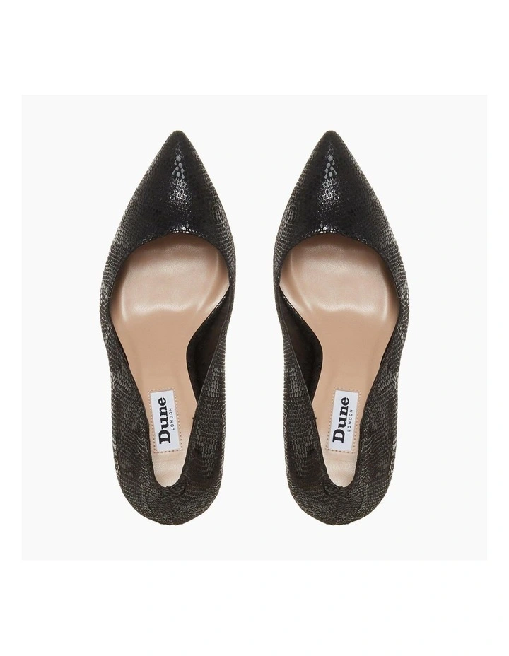 Create a sharp look with this high heel court shoe from Dune. A classic silhouette updated with a signature heel trim. This high heel is a perfect choice for both day and evening.