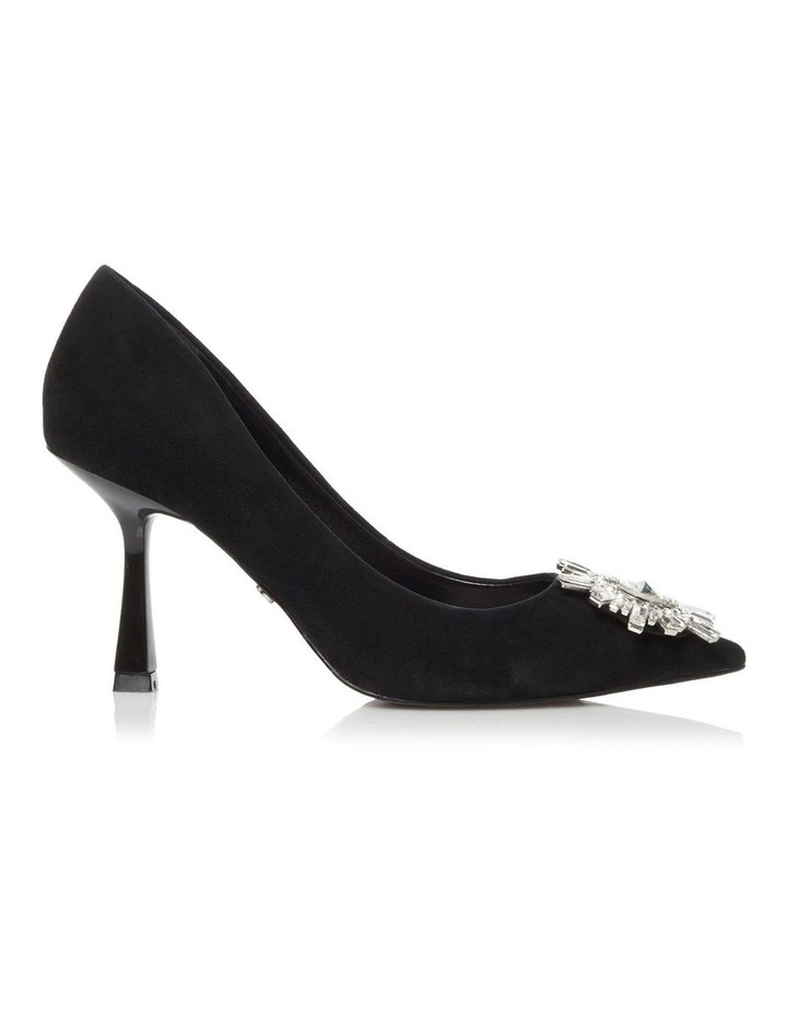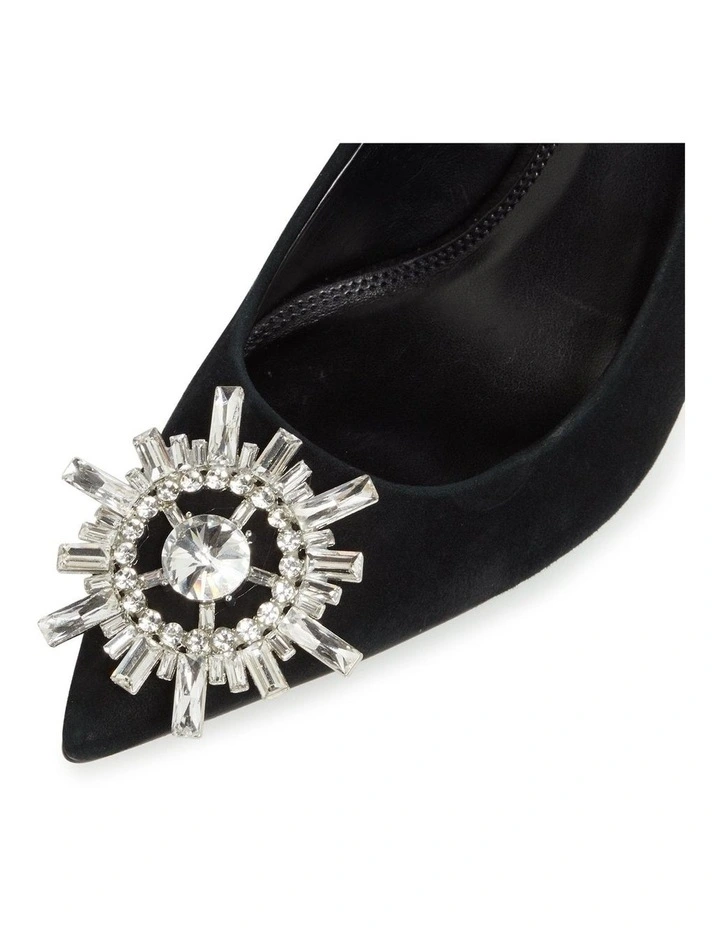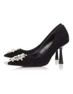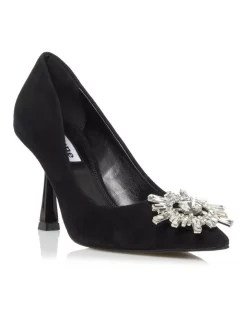 A twist on the traditional court shoe style. Adorned with a sparkling brooch and a unique square stiletto heel. These shoes provide instant glamour and individuality.