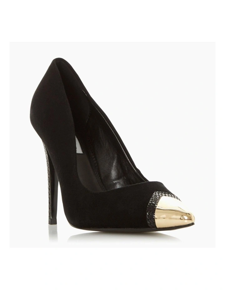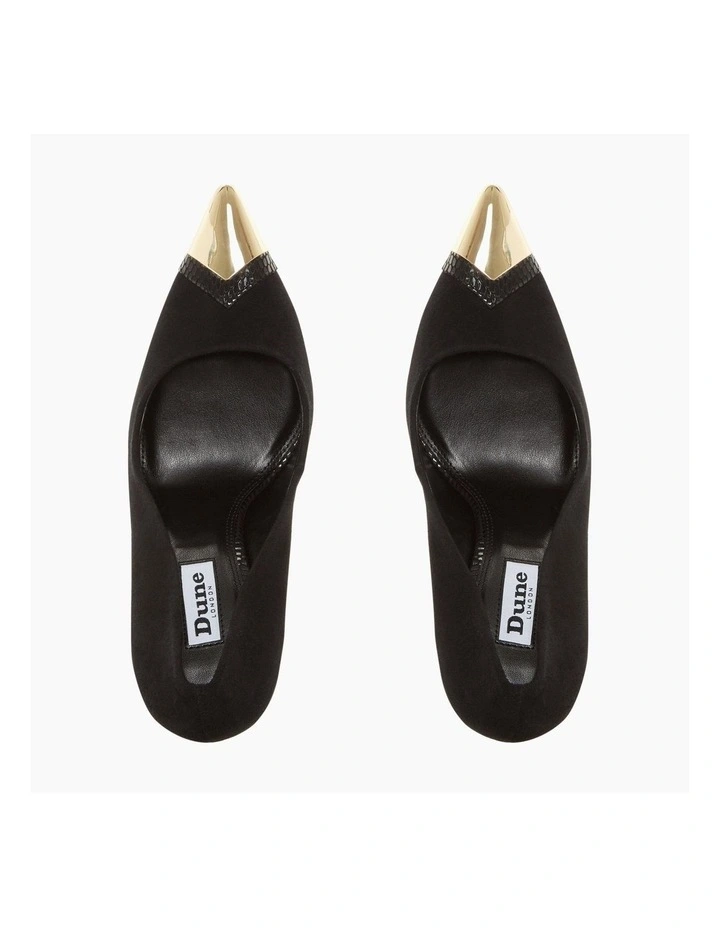 Opt for bold striking femininity with the Boutique court from Dune. A timeless stiletto heel elevated with a contemporary metal toe cap. Its modern femininity finished with a striking high stiletto heel.