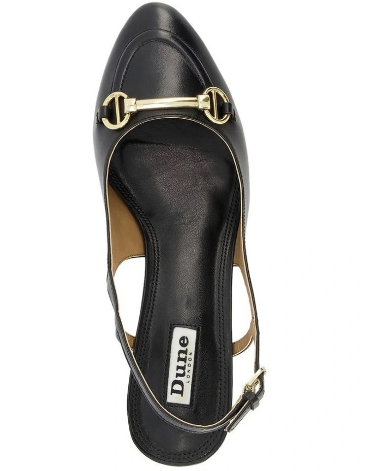 A classic snaffle-detail design meets sophisticated sling back heels. These court shoes are set on a wearable block high heel. The feminine silhouette is punctuated with gold-tone details and buckle.