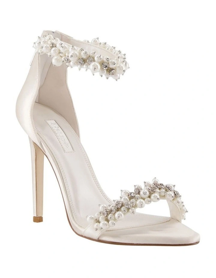 The Dune London Marriage Peep Toe Pump is calling all brides to be. Set on a sleek high-stiletto heel, theyre crafted from sumptuous satin, but what truly makes this special is how weve encrusted the straps with faux pearls and beads to further elevate the look.Β