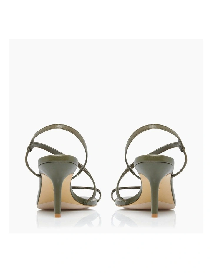This sandal by Dune London is a simple yet stylish evening option. Showcasing a feminine asymmetric strap with a slingback design. It features an open sandal toe and rests on a mid stiletto heel.