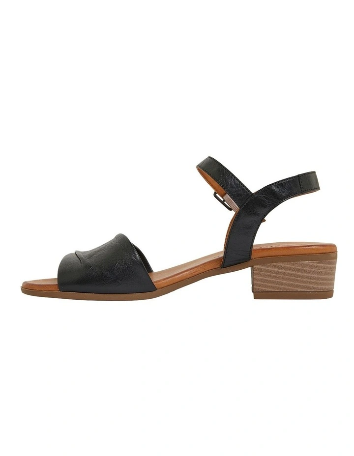 MAISY evokes a free spirited aesthetic with the wooden style block heel. They’re crafted from smooth leather with a slightly folded toe strap look, and accented with gold hardware on the ankle fastening. Style them with casual separates to floaty skirts