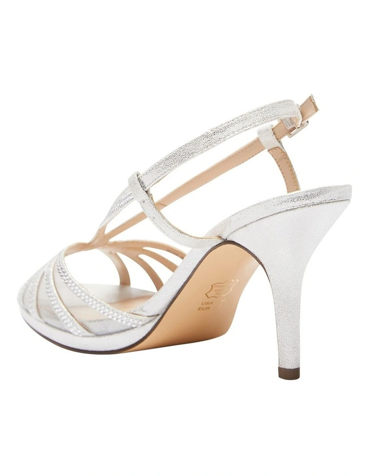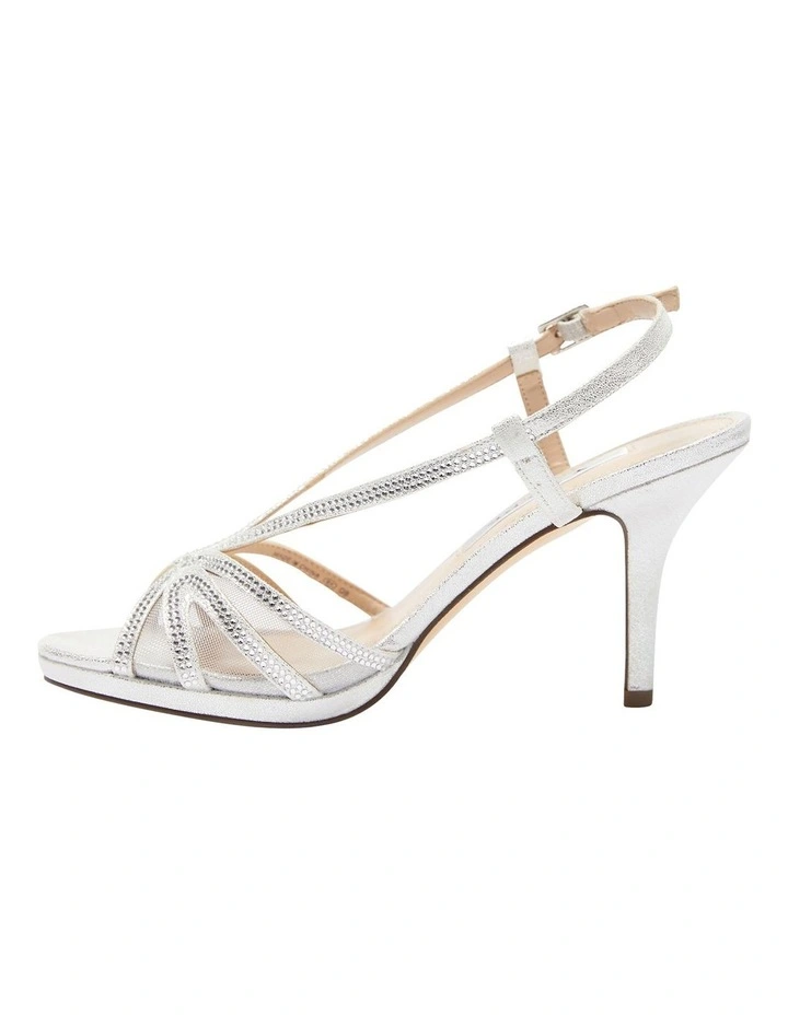 Crystal-encrusted straps and peek-a-boo mesh inserts add eye-catching glamour to this deco-inspired sandal with a throat line that lengthens the leg. BARBARAΒ features a slim platform and is fastened with an adjustable back strap with a buckle closure.
