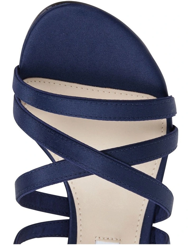 Be prepared for any wedding or special occasion with these glossy sandals with cross over straps for a contemporary vibe and comfortable low heel.