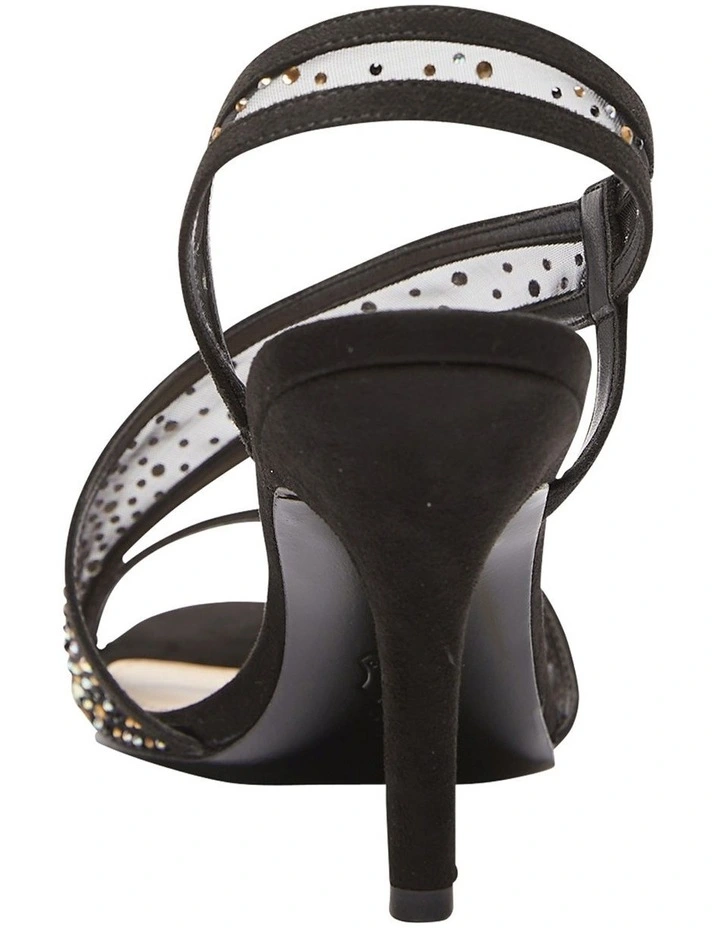 Be prepared for any wedding or special occasion with these glossy sandals with cross over straps for a contemporary vibe and comfortable low heel.