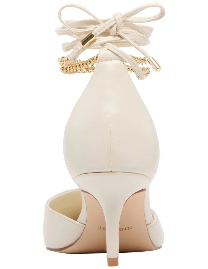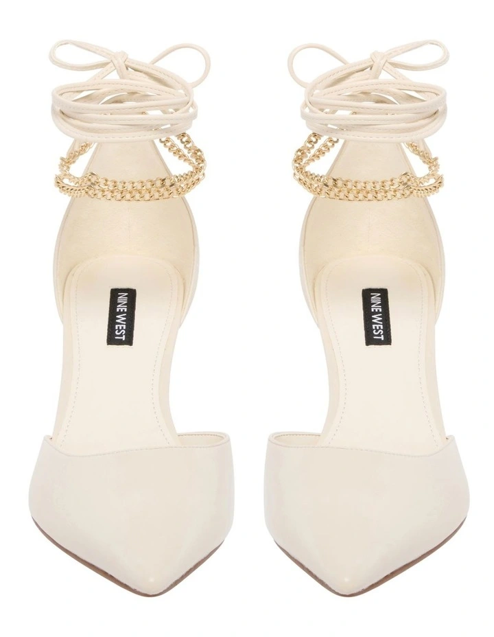 Lace-up your fashionable fits with the Adora Pump. This low-mid height pump features a classic stiletto heel, pointed toe and cut out openings on the side of the vamp. Melding two unexpected textures together, the lace-up design consists of a leather and delicate chain texture, creating a contemporary feel to the classic pump.