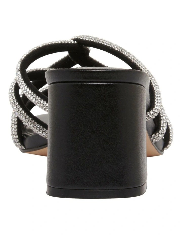 Dazzle in new season sparkle with the Glitz Sandal. Bedazzle your fancy fits with this classic block heel, square toe sandal. The delicate embellished straps across the vamp intertwine to create a twist knot design, stealing the spotlight of this strappy silhouette. This maximalist look of footwear glam creates a luxe finish to your social season shoedrobe.