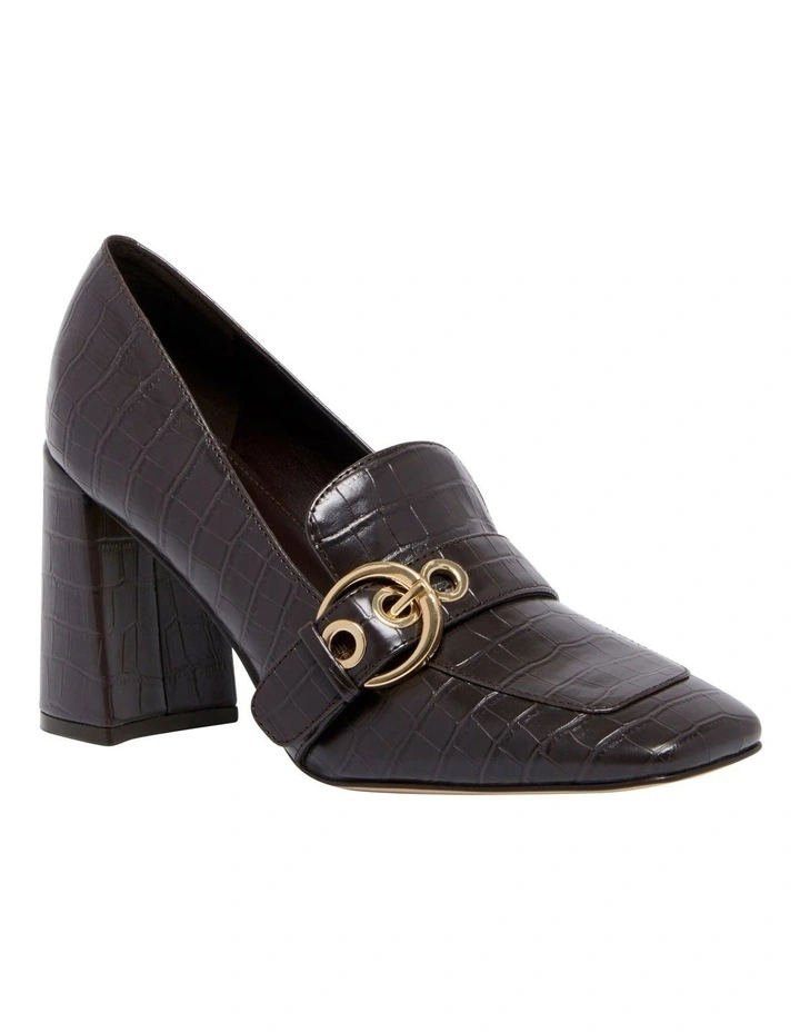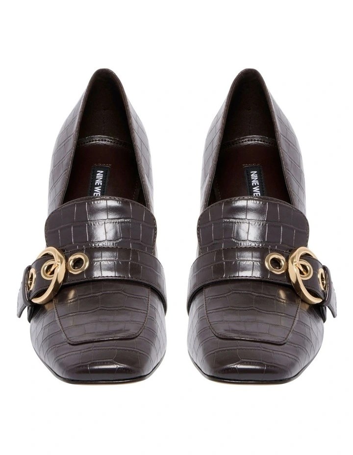 The Urila Pump takes your classic loafer to new heights with it’s sturdy block heel. Urila is a modern and fresh take on your favourite versatile loafer. Featuring an on-trend square toe front, comfortable footbed and buckle detail across the front of the foot, this trendy pump is ideal for elevating your workwear looks.