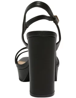 Effortlessly combining elegance and sass, LULU by Ravella is a chic platform heeled sandal. Adorning twin slender straps atop a tubular block heel and sleek platform, it finishes with a silver-toned buckle clasping an adjustable ankle strap. To complete a fierce look, pair yours with a mini dress.Β