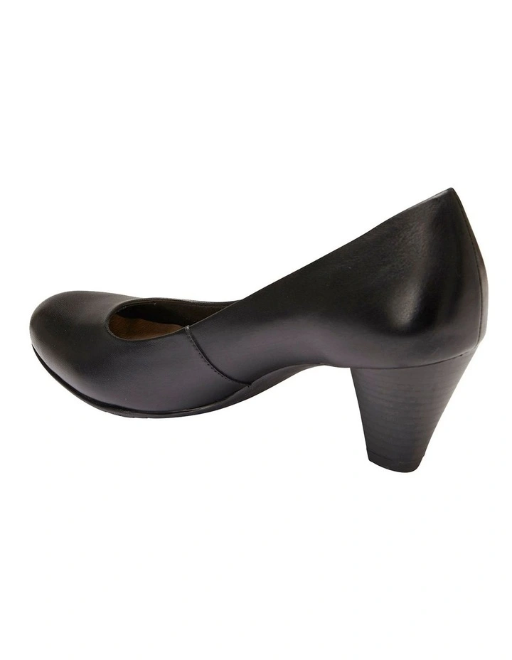 The classic work pump makes a comeback with RAGLEY. Detailed with a block heel and grip sole, this style is an essential corporate option. Approx. 6cm heel height Leather upper Synthetic lining Synthetic grip sole