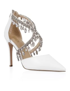 Meet BELLA, our stand-out pointed stiletto heel for your next special occasion. Bella is the perfect shoe to complete any dressy look, with jewelled hardware adorning the upper straps, a zip up enclosed heel, and a sleek point toe.