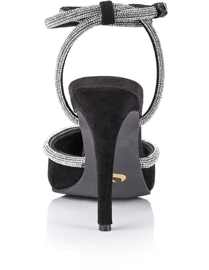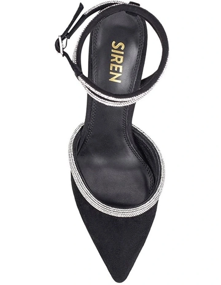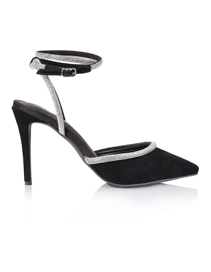 Featuring a thin, delicate sling back diamante ankle strap, sleek stiletto heel, pointed toe, the Betty Heels sophisticated silhouette and classic design aesthetic will allure you from your desk and into your evening’s events.
