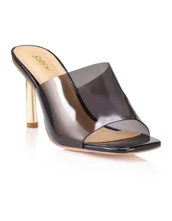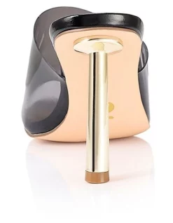 It’s heating up with the fiery ‘Jade’ mules. With a modern twist on classic, the striking golden metal stiletto mule paired with a square-toe, make this the style that’s hard to miss this season.