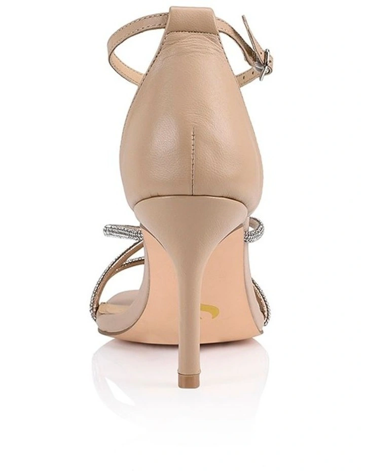 Showered in diamantes, the Liara sandal is ideal for adding glamour to any look. Sitting on a stiletto heel and finished with an open square toe, this strappy style is made from leather. Style it with bold colours for your next night out.
