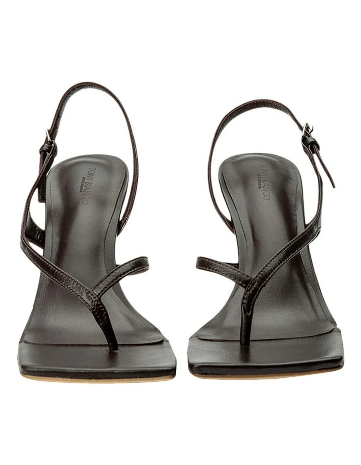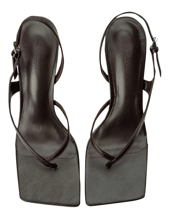 Barely there, the Lincoln brown strappy heels will be your go-to this party season. Featuring a squared toe-shape, a thin thong-strap upper and a silver-toned buckle. Dress up with a mini dress and matching red lipstick for the ultimate party look.