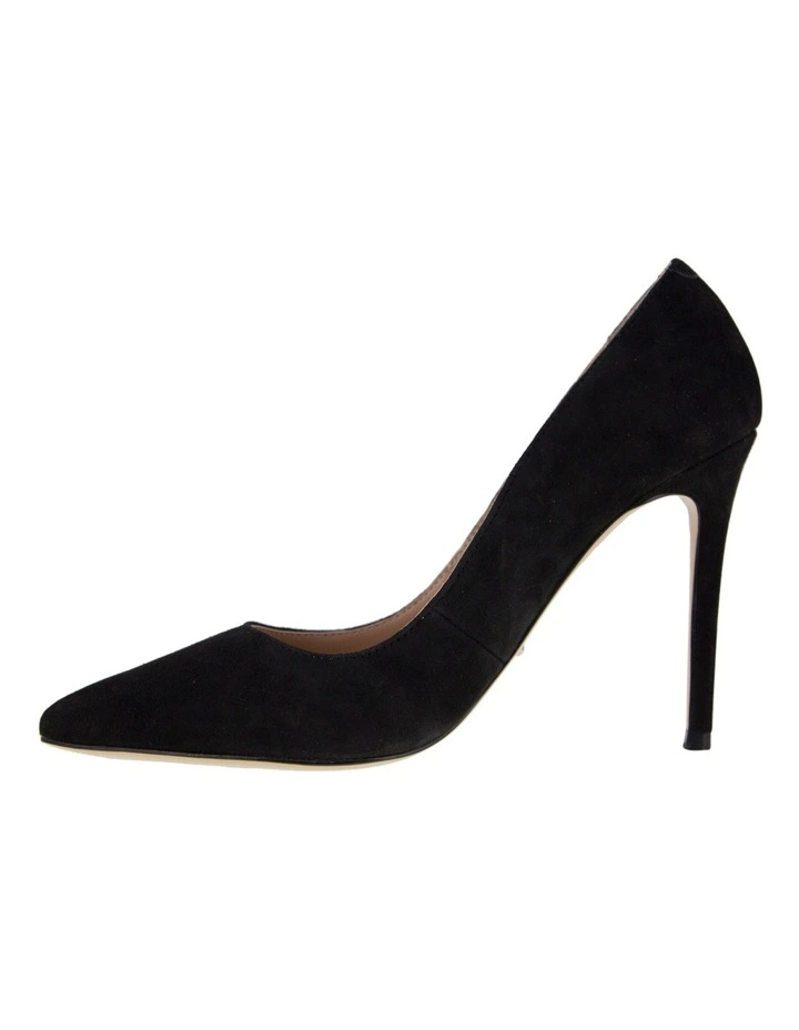 Nothing but class, see why the Lotus heels from Tony Bianco are oh so popular today. In a smooth black suede this heel features a sharp pointed toe shape, low cut vamp to show slight toe cleavage and elevated with a 10.3cm stiletto heel.