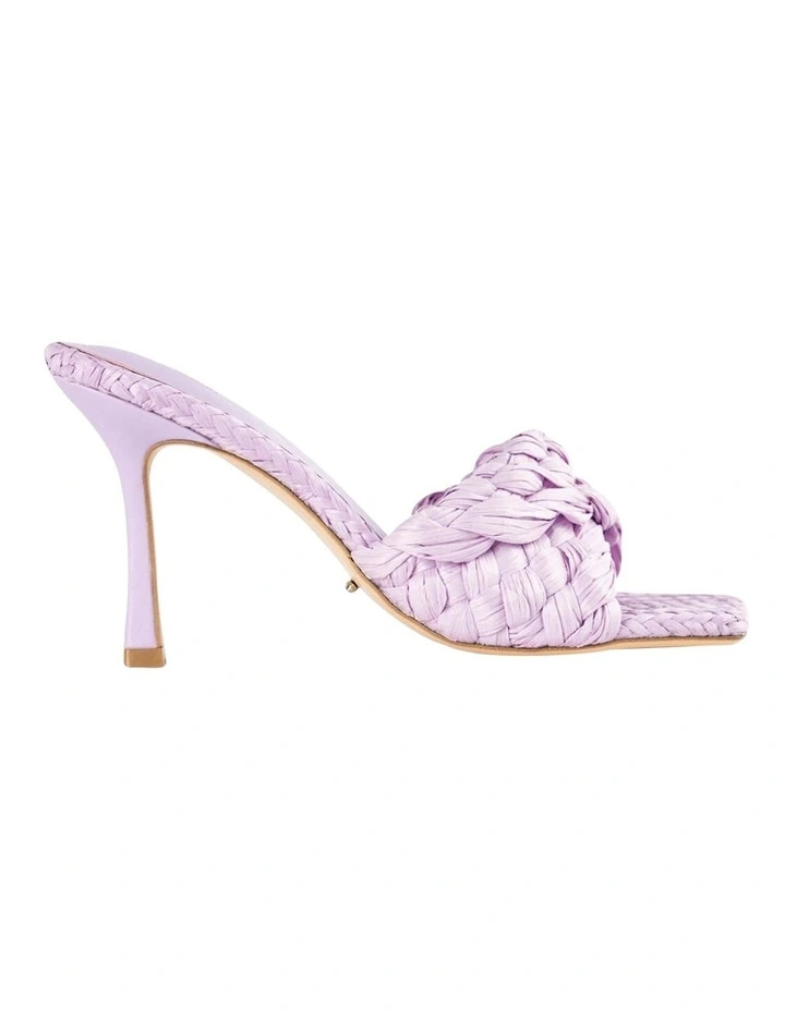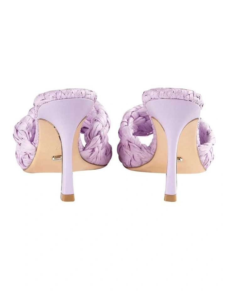 Make a statement next time you go out in the Lourdes mule in lilac. Featuring a woven raffia strap and finished on a 9.5cm heel, their design makes them perfect for day-time dressy events.